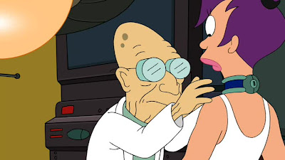Bender gets lost in his imagination (previously dormant) and is sent to the HAL Insitute for Criminally Insane Robots where, as in reality their "therapy" is basic and brutal (intentionally; just load the subject with psychotropic drugs, the odd shock therapy... and bam cured! Wonder why it's so ineffective...). The therapist/programmer is DR. PERCEPTION (designed to change his victims' perception) and his head is made of an impractical glass plasma ball (purple) type Tesla thing, which is obviously shattered at one point (a victim of his own "therapy" techniques).